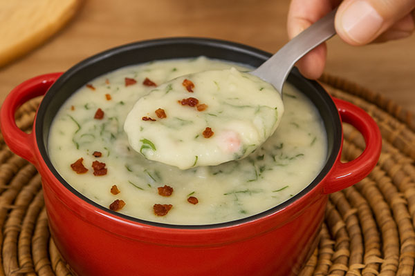 Sopa Cremosa de Batata com Bacon e Couve